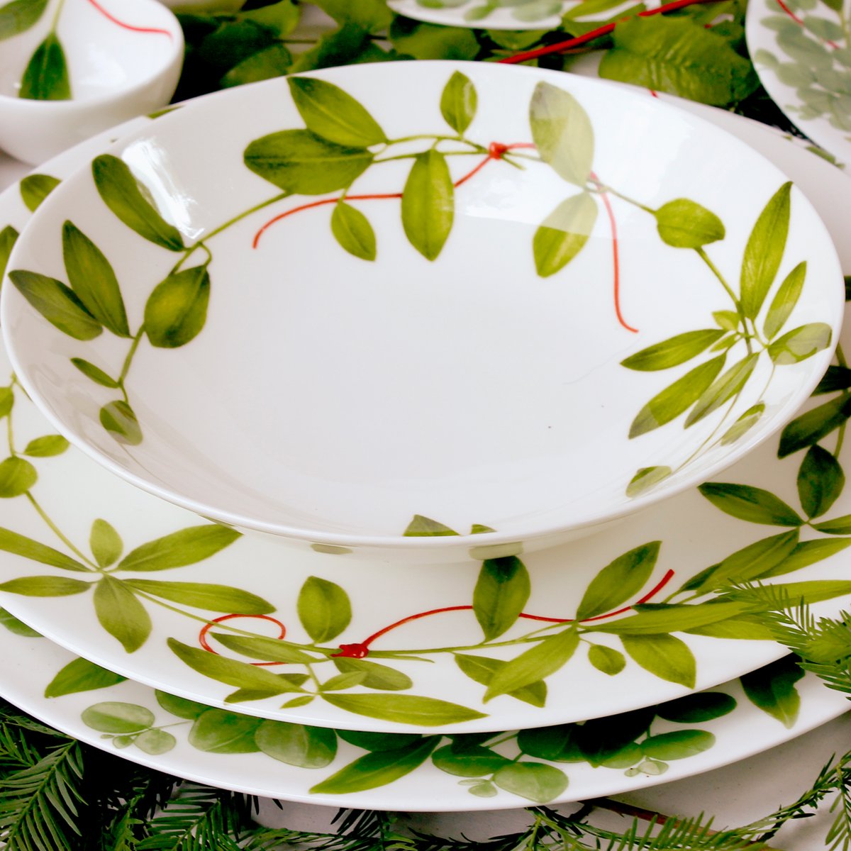A thin FIL ROUGE wreaths among twines of Eucalyptus and Laurel leaves. The green colour masters the scene and instils serenity, while a touch of red colour warms your heart.