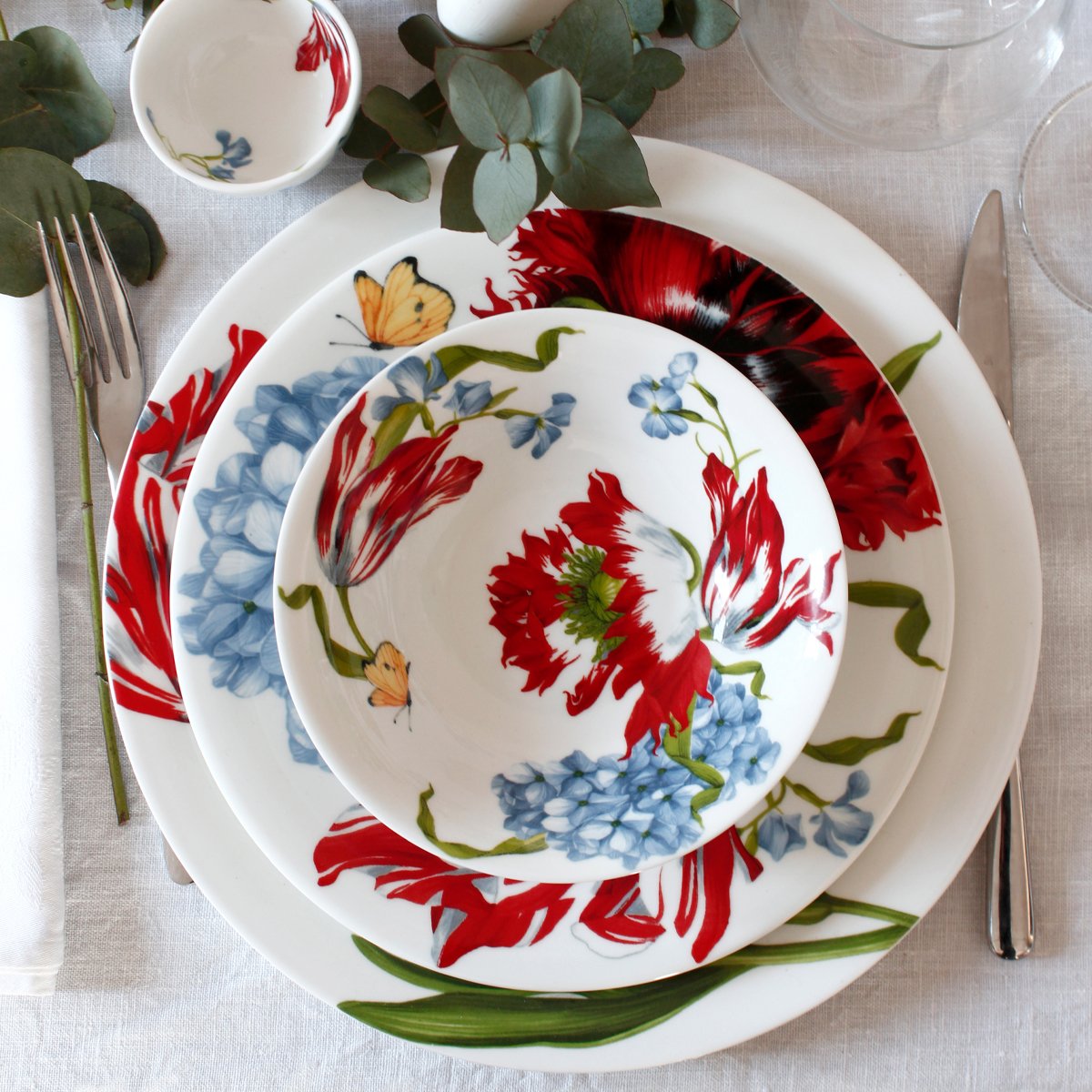 Con Emotion, TAITÙ introduce nuove forme sinuose, sulle quali il decoro fiammingo si sviluppa in ogni dettaglio della porcellana.