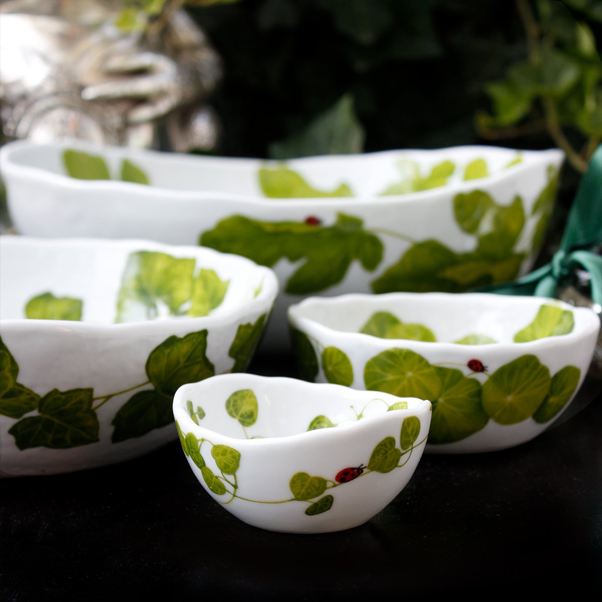 GARDEN OF BEAUTY è il Giardino delle Meraviglie TAITÙ: ogni foglia della GREEN Collection è un augurio portafortuna, che avvolge come un abbraccio la preziosa Fine Porcelain dall’aspetto materico. Piccole coccinelle rosse su ogni oggetto aggiungono un tocco di fortuna e gioia, un simbolo di buon auspicio per augurare buona fortuna in ogni occasione.